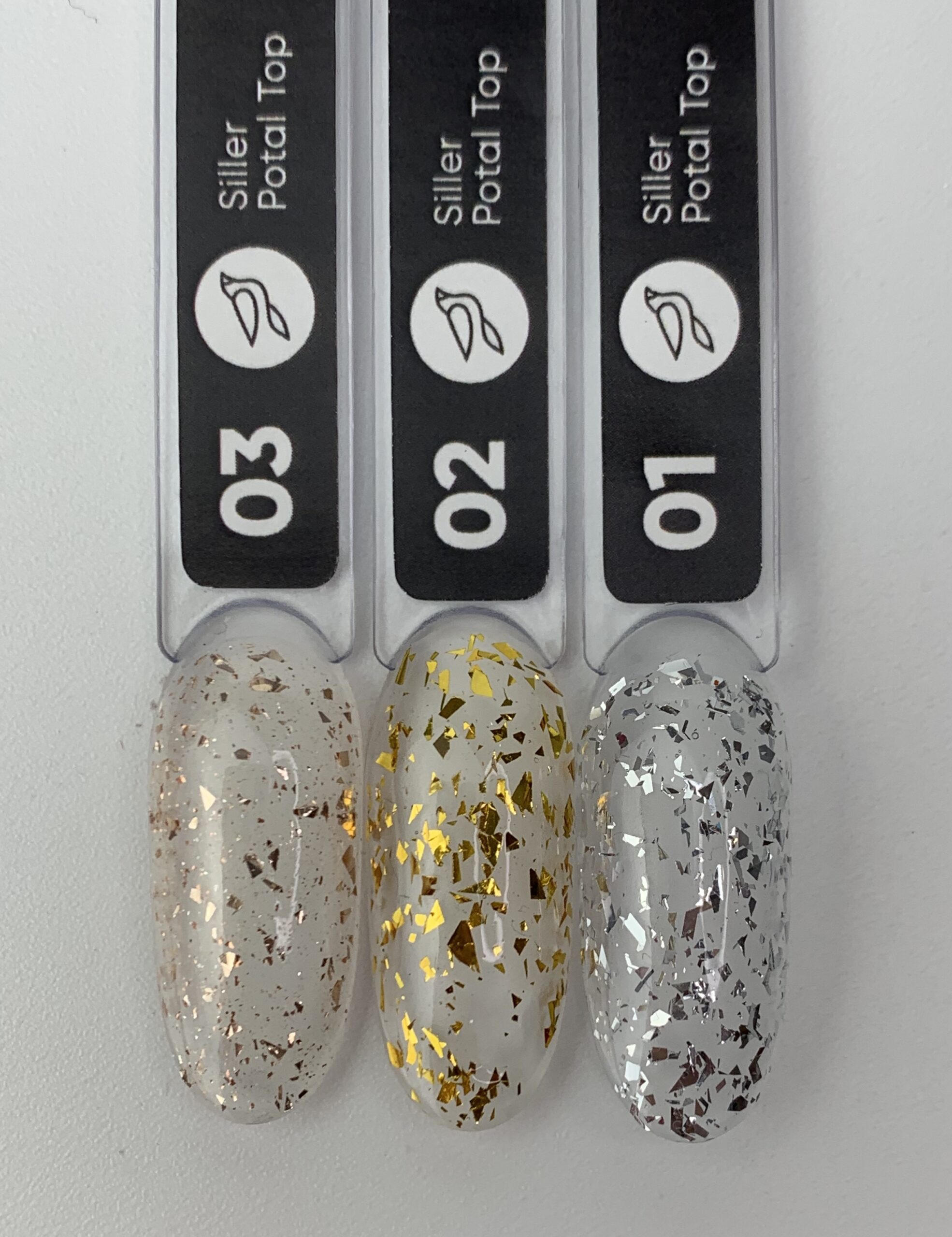 Топове покриття від Siller Professional - Potal Top декоративний топ з часточками поталі.